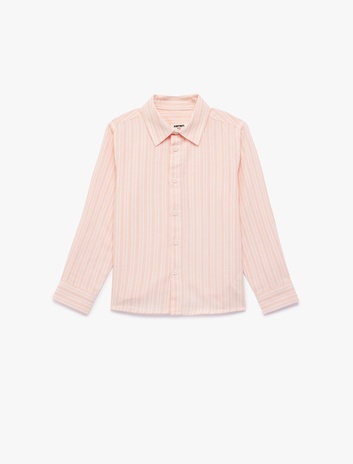 Pamuklu Uzun Kollu Klasik Yaka Çizgili Gömlek Sepete Ekle
