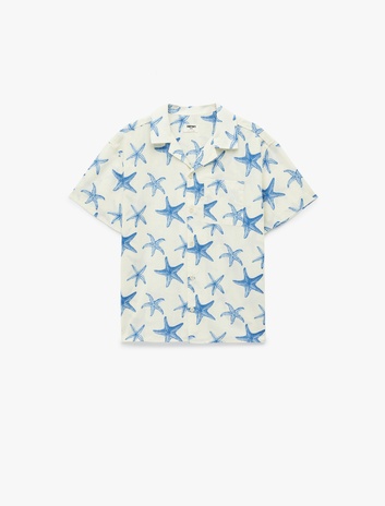 Pamuklu Desenli Devrik Yaka Kısa Kollu Gömlek Sepete Ekle