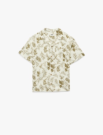 Pamuklu Kısa Kollu Yaprak Desenli Gömlek Sepete Ekle