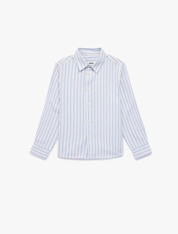 Pamuklu Düğmeli Uzun Kollu Klasik Yaka Çizgili Gömlek Sepete Ekle