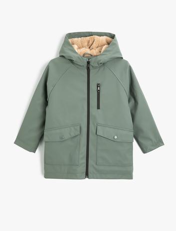 Kapşonlu Yağmurluk Peluş Astarlı Su Geçirmez Kapaklı Cepli Sepete Ekle