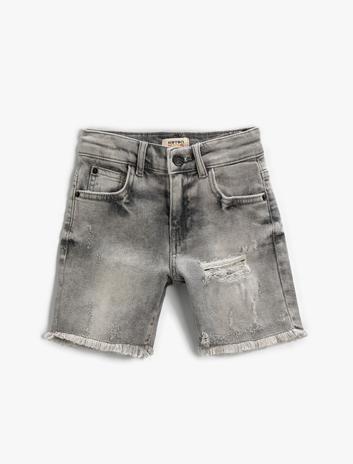 Erkek Çocuk Kot Şort Yırtık Pamuklu Cepli Diz Üstü