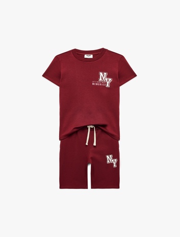 Bisiklet Yaka Kısa Kollu Pamuklu Baskılı Tişört Şort Takımı - 2'li Set Sepete Ekle