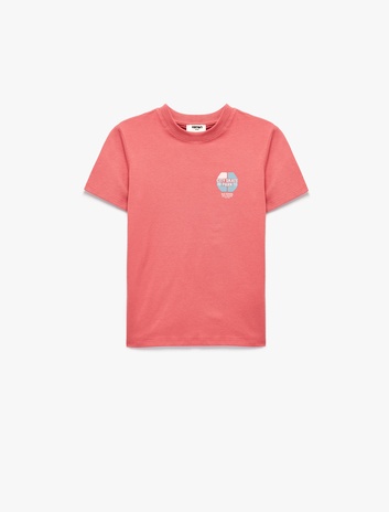 Pamuklu Kısa Kollu Bisiklet Yaka Baskı Detaylı Tişört Sepete Ekle