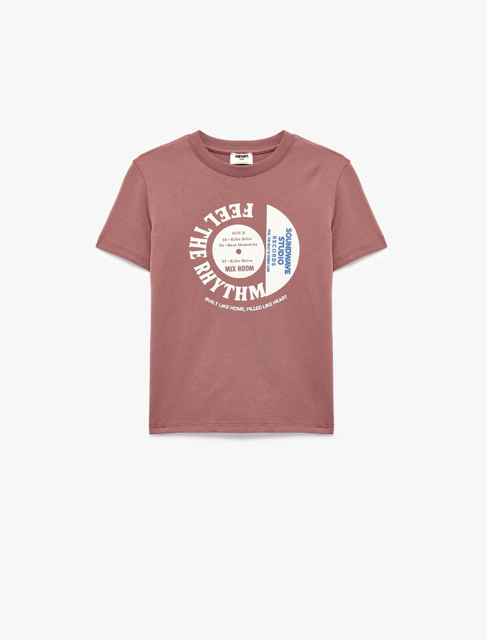 Pamuklu Kısa Kollu Bisiklet Yaka Baskılı Tişört Sepete Ekle