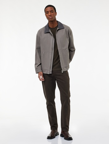Kapaklı Cepli Regular Fit Pamuklu Gömlek Yaka Fermuarlı Bomber Jean Ceket