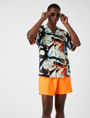 Deniz Şortu Yaprak Baskılı Beli Bağcıklı Cepli