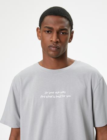 Slogan Baskılı Tişört Bisiklet Yaka Kısa Kollu Pamuklu