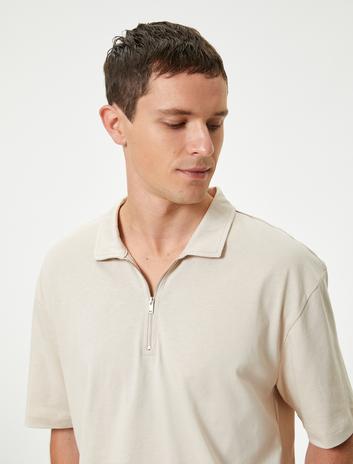 Polo Yaka Tişört Oversize Yarım Fermuarlı Kısa Kollu Pamuklu