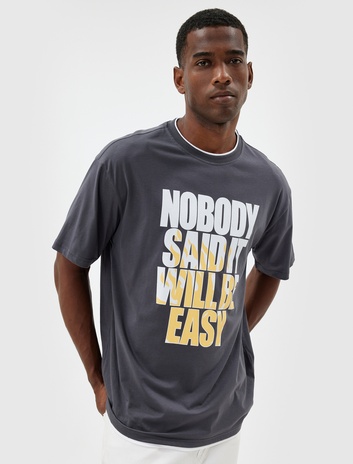 Oversize Tişört Slogan Baskılı Bisiklet Yaka Kısa Kollu Pamuklu Sepete Ekle