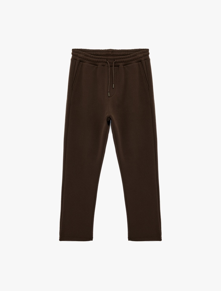 Straight Fit Cep Detaylı Şardonlu Beli Lastikli Kışlık Eşofman Altı