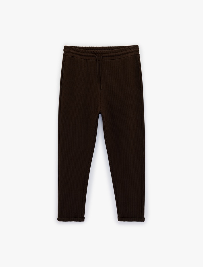 Regular Fit Waffle Dokulu Cepli Beli Bağcıklı Eşofman Altı Sepete Ekle