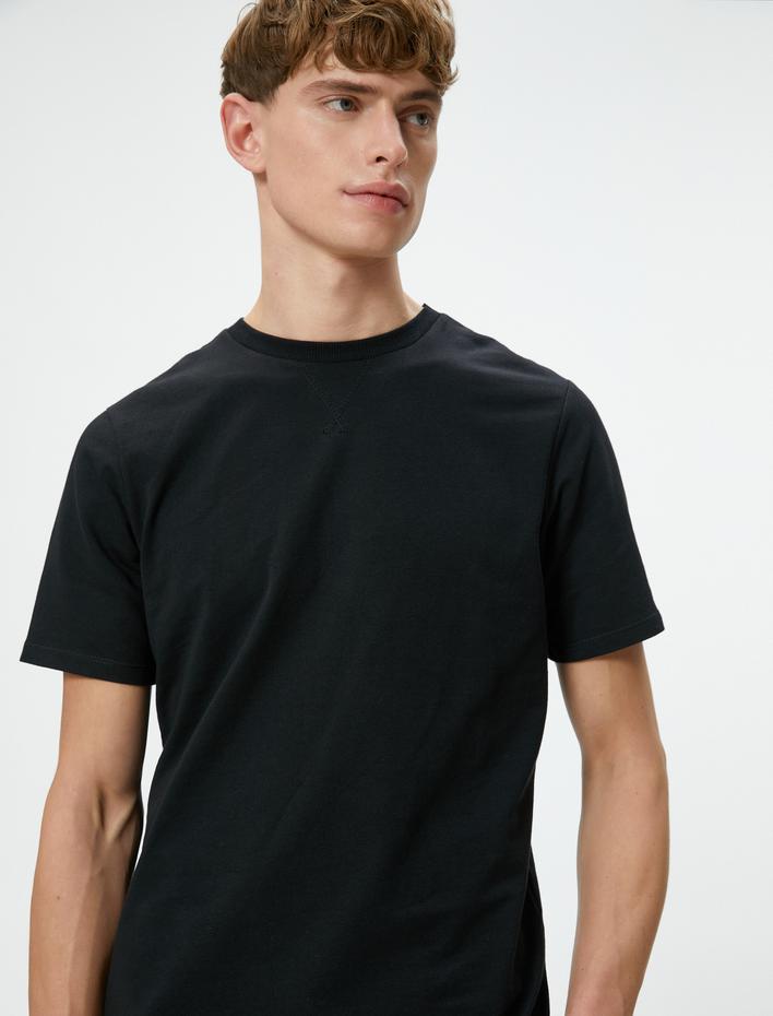 Basic Tişört Kumaş Detaylı Bisiklet Yaka Slim Fit Dokulu