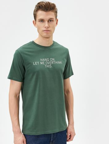 Slogan Baskılı Tişört Slim Fit Bisiklet Yaka Kısa Kollu