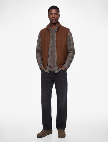 Kolsuz Cepli Hakim Yaka Fermuarlı Kaşe Yelek