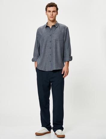 Uzun Kollu Gömlek Dokuma Cep Detaylı Klasik Yaka Düğmeli