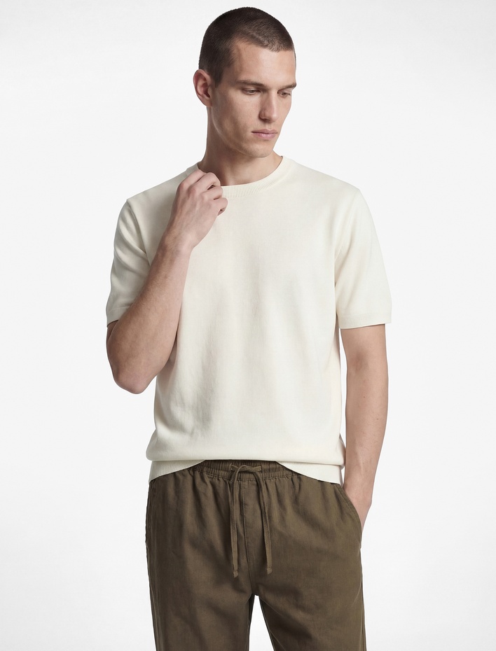 { "id": "8684969687421", "name": "Regular Fit Bisiklet Yaka Viskon Karışımlı Kısa Kollu Basic Triko Tişört", "taxonomy":["MENSWEAR","SMART","MEN","KNITWEAR","SWEATERS"], "currency": "TRY", "unit_price": 1399.99 , "unit_sale_price": 1399.99 , "url": "https://www.koton.com/regular-fit-bisiklet-yaka-viskon-karisimli-kisa-kollu-basic-triko-tisort-ekru-4164376-1/", "stock": 8, "color": "EKRU", "size": "M", "product_image_url": "https://ktnimg2.mncdn.com/products/2026/04/10/3221583/f5b50e13-21ac-4824-a19a-5bf5ac16411f_size870x1142.jpg" }