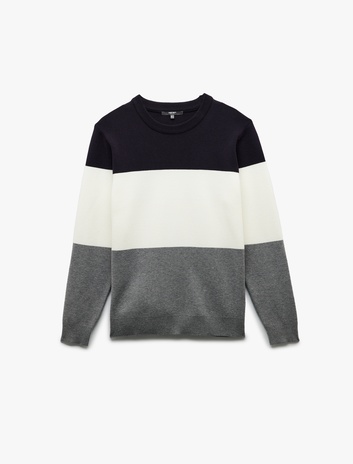Uzun Kollu Renk Bloklu Bisiklet Yaka Triko Kazak