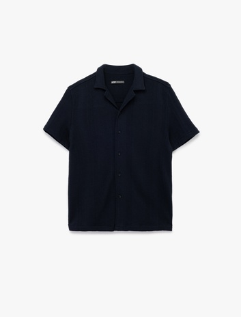 Regular Fit Kısa Kollu Cep Detaylı Dokulu Devrik Yaka Gömlek Sepete Ekle