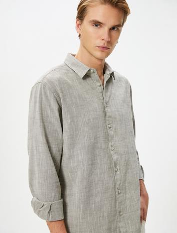 Klasik Yaka Gömlek Düğmeli Uzun Kollu Pamuklu