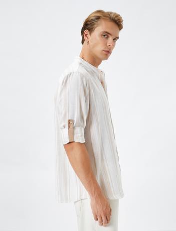 Hakim Yaka Gömlek Uzun Kollu Düğmeli Katlanabilir Kol Detaylı
