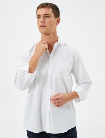 Uzun Kollu Gömlek Dokuma Cep Detaylı Klasik Yaka Düğmeli Sepete Ekle