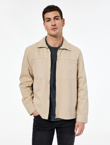 Regular Fit Klasik Yaka Cepli Pamuklu Fermuarlı Gömlek Ceket