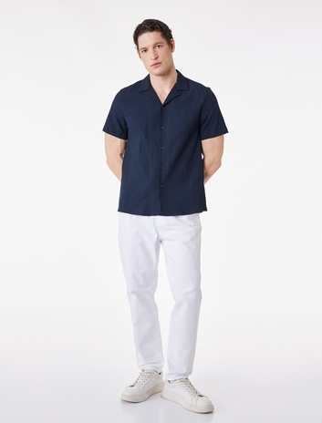 Regular Fit Pamuklu Dokulu Kısa Kollu Apaş Yaka Gömlek Sepete Ekle
