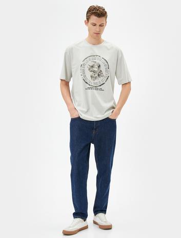 Slogan Baskılı Tişört Bisiklet Yaka Kısa Kollu Pamuklu Sepete Ekle