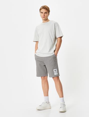 Bermuda Şort Etiket Baskılı Beli Bağcıklı Cep Detaylı