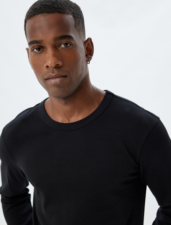 Basic Tişört Uzun Kollu Bisiklet Yaka Pamuklu