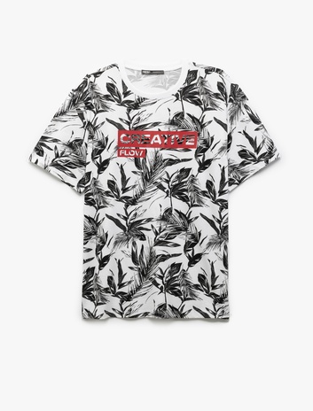 Bisiklet Yaka Pamuklu Regular Fit Kısa Kollu Yaprak Desenli Tişört Sepete Ekle