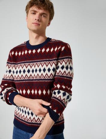 Bisiklet Yaka Kazak Etnik Detaylı Akrilik Karışımlı Sepete Ekle
