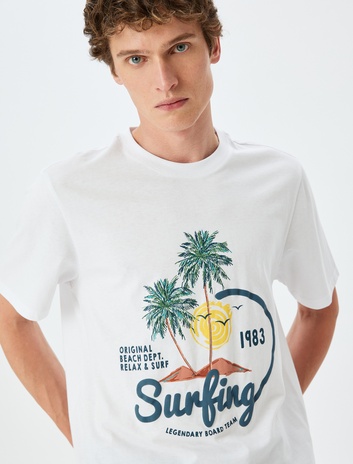 Kısa Kollu Pamuklu Regular Fit Bisiklet Yaka Arkası Baskılı Tişört