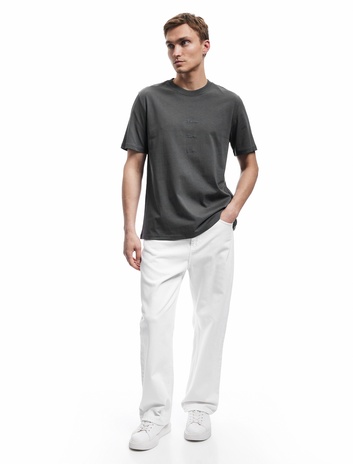 Kısa Kollu İşlemeli Regular Fit Pamuklu Bisiklet Yaka Tişört