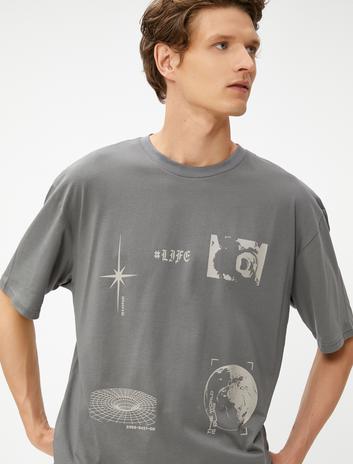 Oversize Tişört Baskılı Uzay Temalı Bisiklet Yaka Pamuklu Sepete Ekle