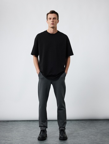 Kısa Kollu Bisiklet Yaka Tok Kumaş Şardonlu Basic Oversize Tişört
