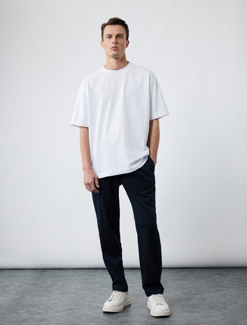 Kısa Kollu Bisiklet Yaka Pamuklu Basic Oversize Tişört Sepete Ekle