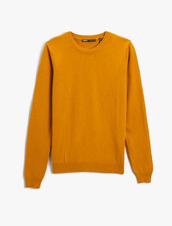 Bisiklet Yaka Dokulu Kumaş Mevsimlik Slim Fit Kazak Sepete Ekle