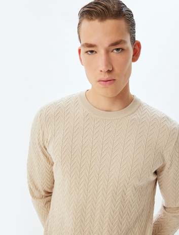 Bisiklet Yaka Uzun Kollu Dokulu Triko Kazak