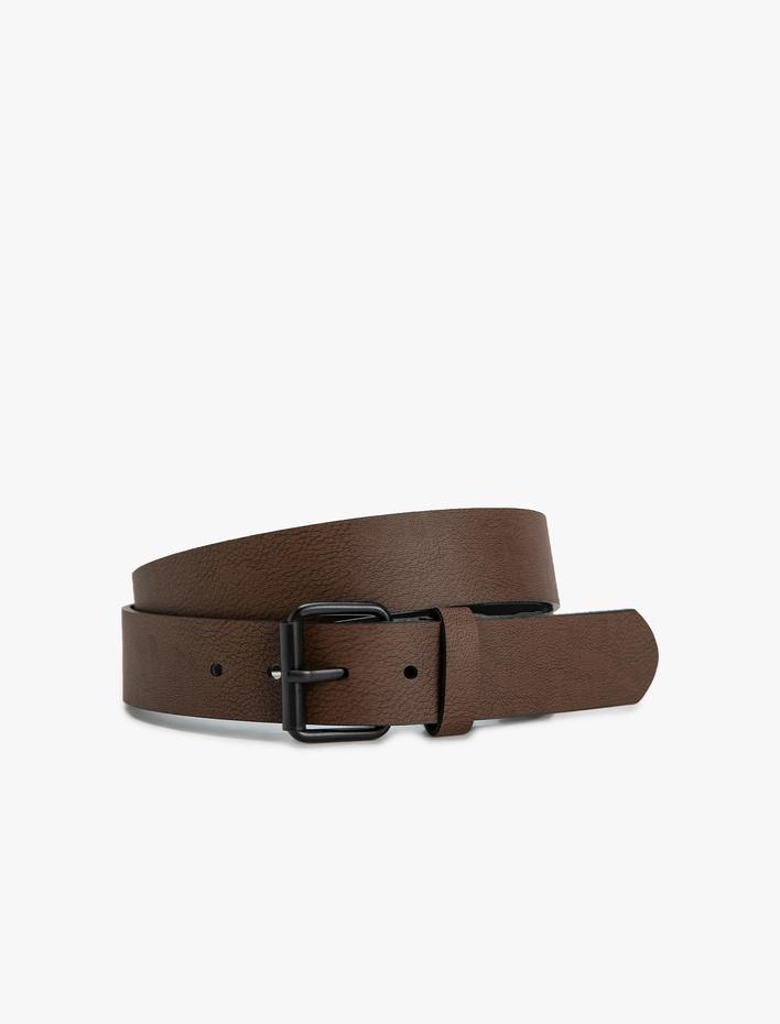 Erkek Kemer Deri Görünümlü Metal Toka Detaylı