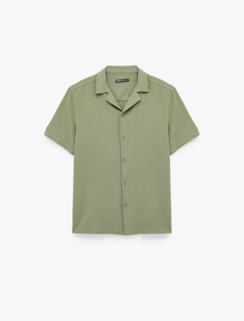 Regular Fit Keten Karışımlı Kısa Kollu Apaş Yaka Gömlek Sepete Ekle