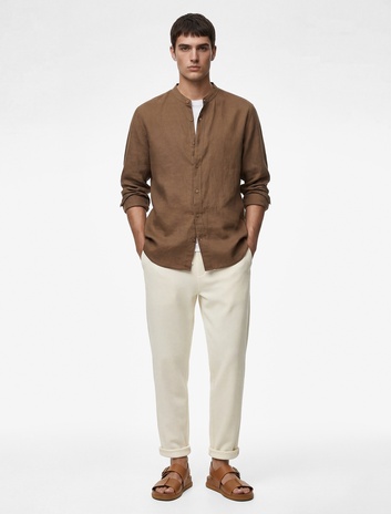 Regular Fit Uzun Kollu Düğmeli Hakim Yaka Keten Gömlek Sepete Ekle