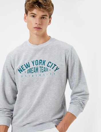 Kapşonlu Kolej Sweat Slogan İşlemeli Uzun Kollu Sepete Ekle