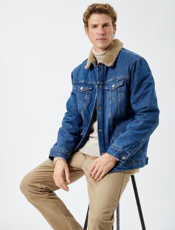 Kot Ceket İçi Suni Kürklü Yaka Detaylı Kapaklı Çift Cepli