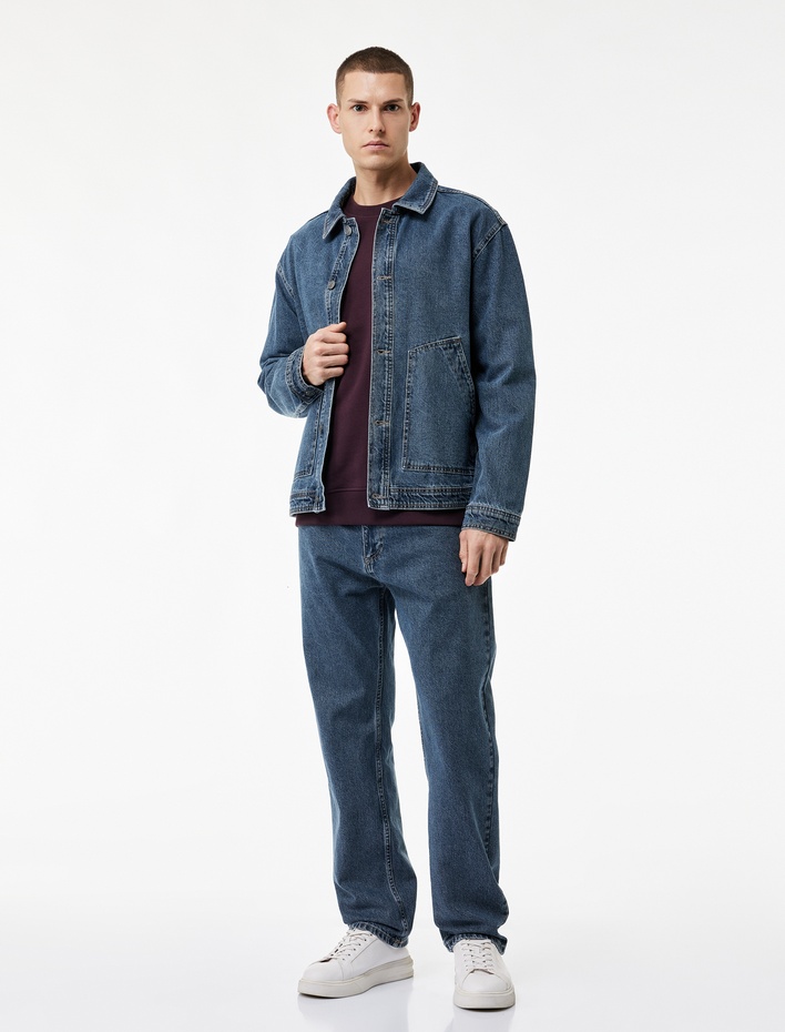 Rahat Kalıp Düğmeli Cepli Gömlek Yaka Jean Ceket