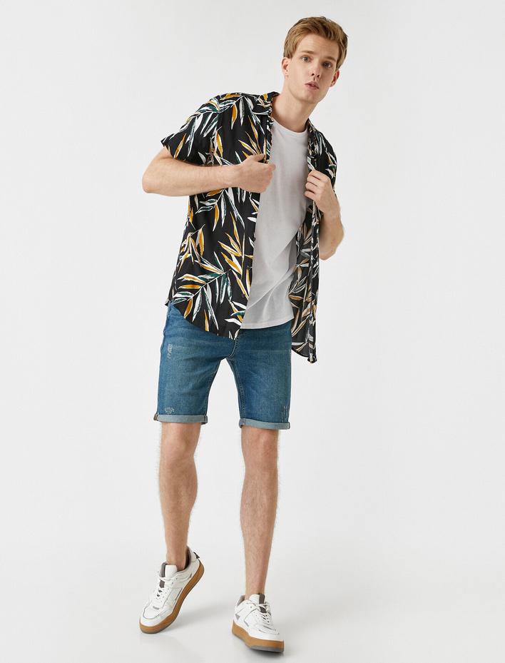 Yırtık Kot Şort Cep Detaylı Düğmeli