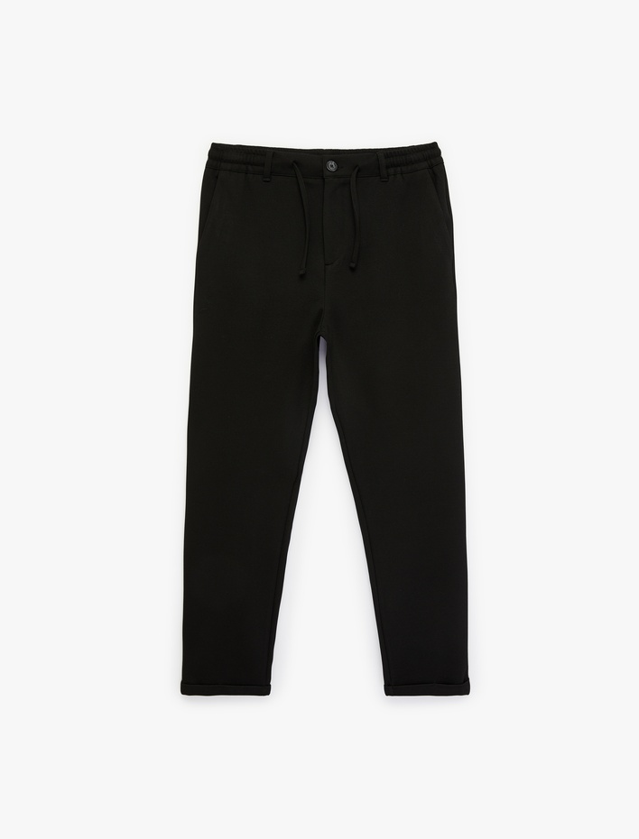 Beli Bağcıklı Düğmeli Pike Kumaş Cep Detaylı Duble Paça Slim Fit Pantolon