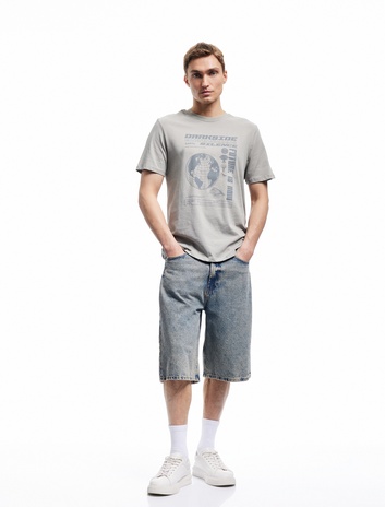 Kısa Kollu Bisiklet Yaka Regular Fit Pamuklu Baskılı Tişört