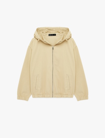 Uzun Kollu Regular Fit Cepli Fermuarlı Kumaş Detaylı Kapşonlu Ceket Sepete Ekle
